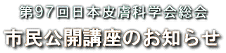 第97回日本皮膚科学会総会の一環として、下記の要領にて市民公開講座を開催します。来聴はどなたでも自由ですのでふるってご参加下さい。日 時:平成10年5月28日 午後2時より5時