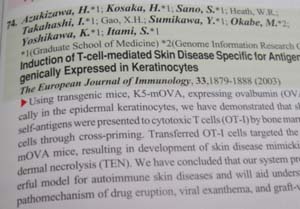 Induction of T-cell-mediated skin disease specific for antigen transgenically expressed in keratinocytes. Azukizawa H, Kosaka H, Sano S, Heath WR, Takahashi I, Gao XH, Sumikawa Y, Okabe M, Yoshikawa K, Itami S. |