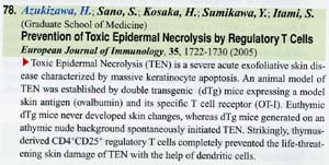 Prevention of toxic epidermal necrolysis by regulatory T cells. Azukizawa H, Sano S, Kosaka H, Sumikawa Y, Itami S. |
